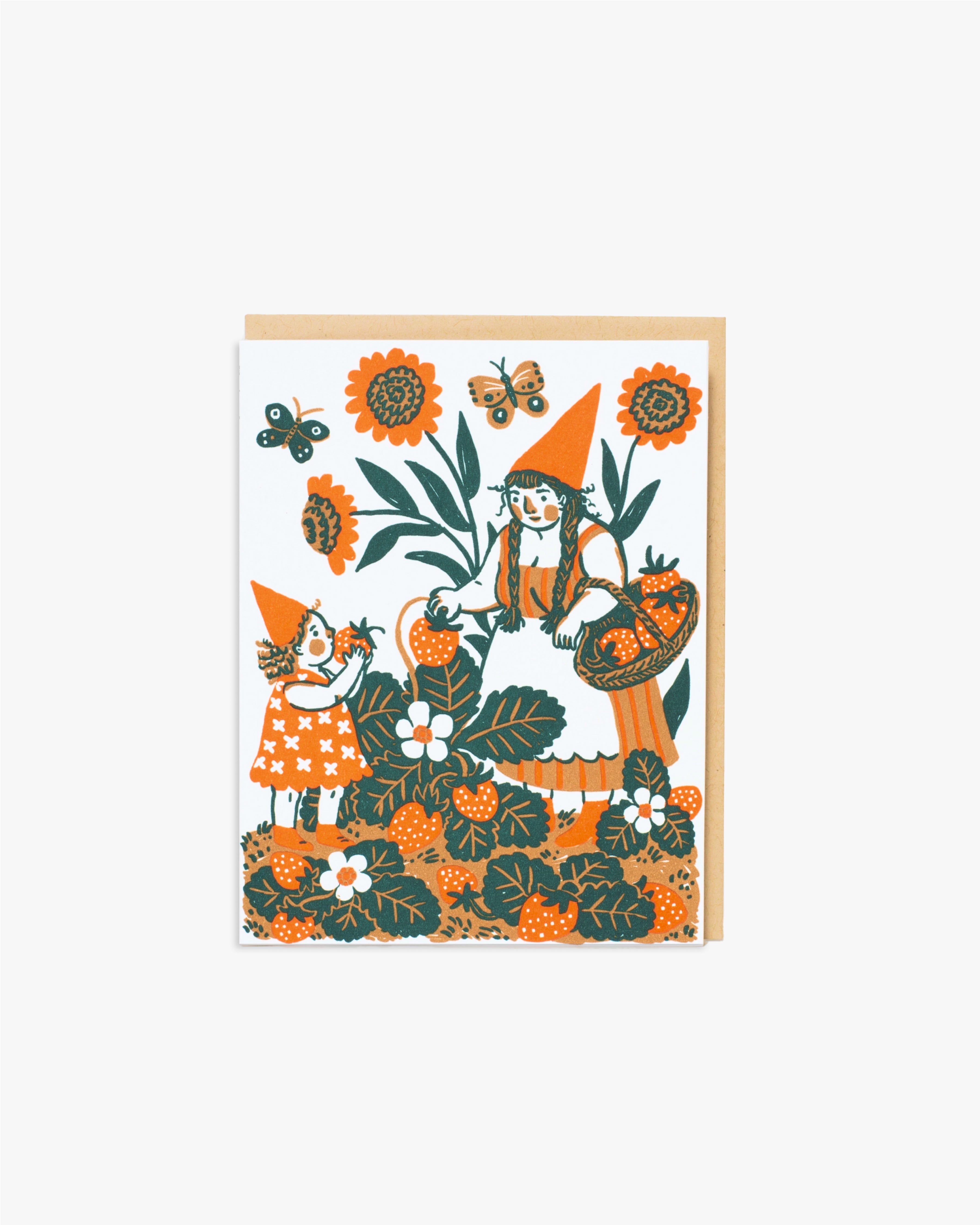 Strawberry Picking Letterpress Card