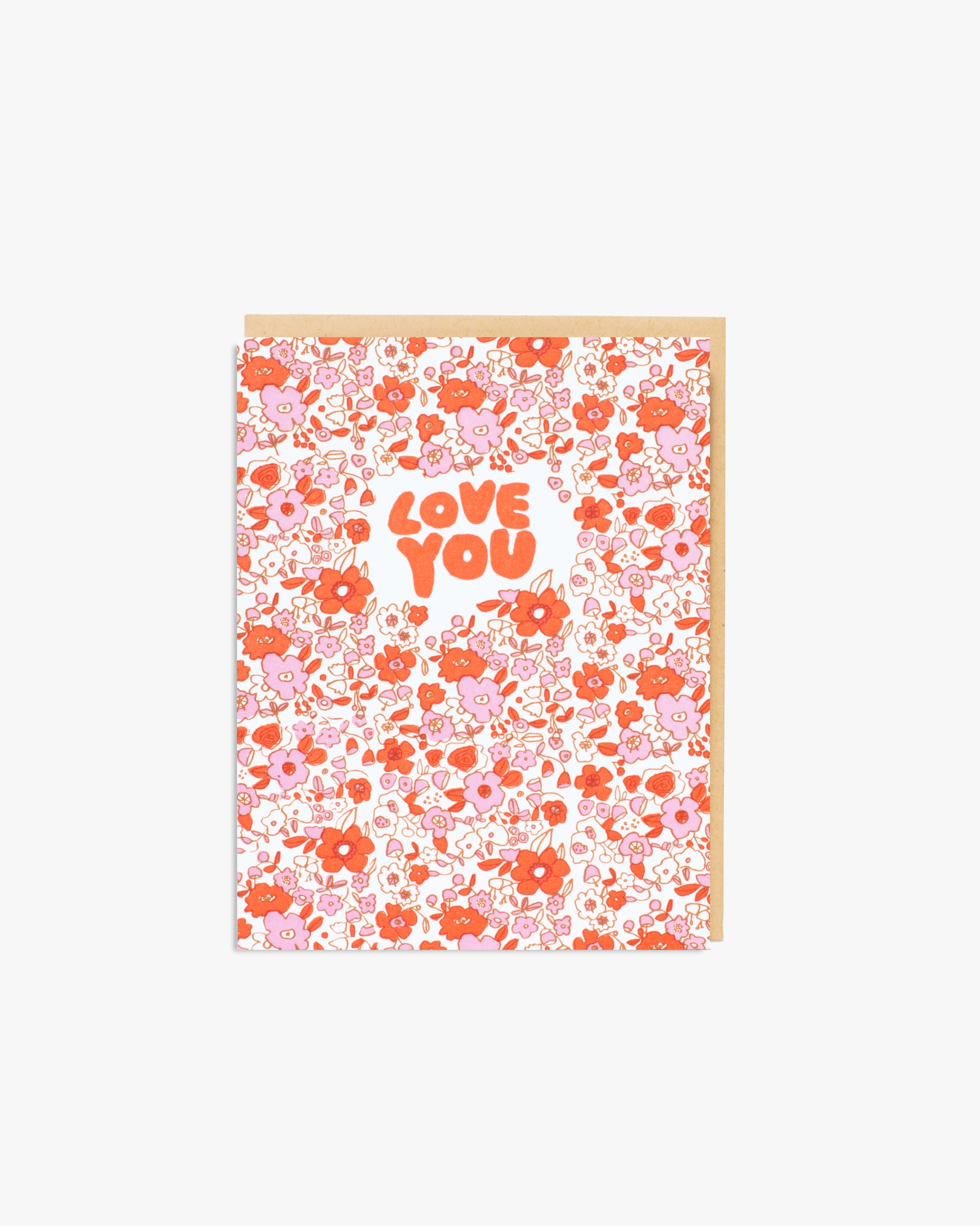 Love You Calico Letterpress Card