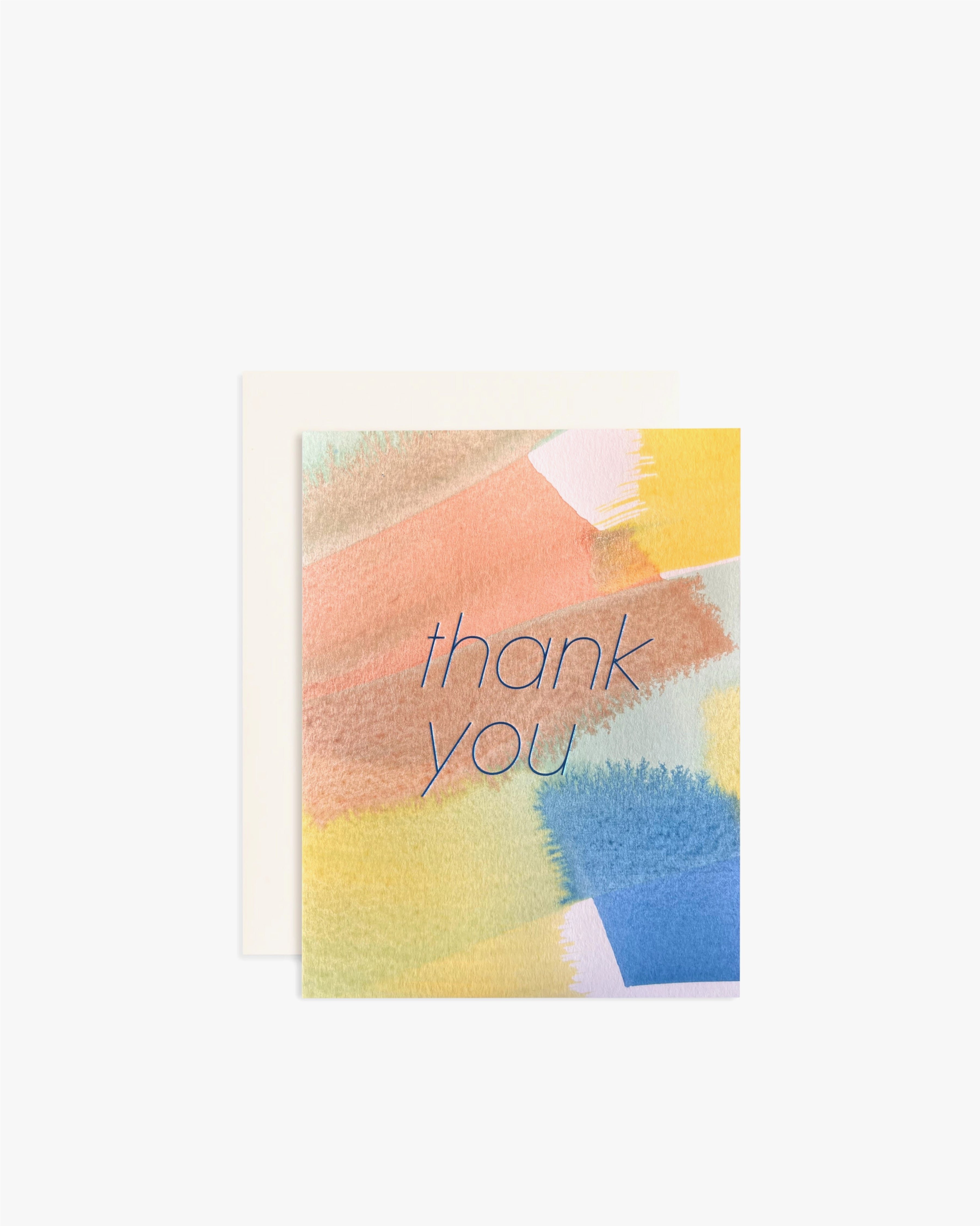 A beautiful thank you card, hand-painted on large sheets of cardstock, then foil-stamped using antique foil presses. Each card is one of a kind, so colors and patterns will vary from what you see.