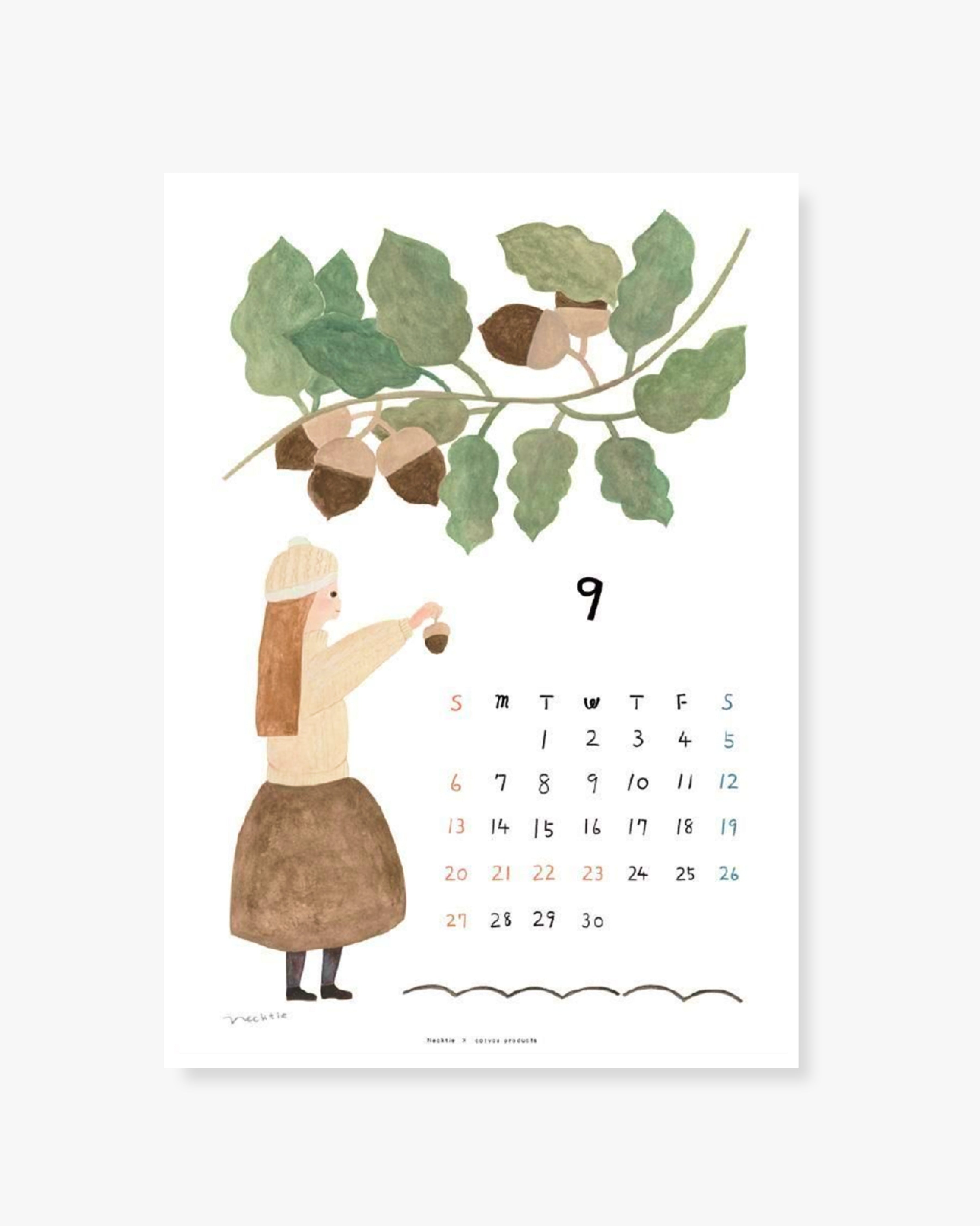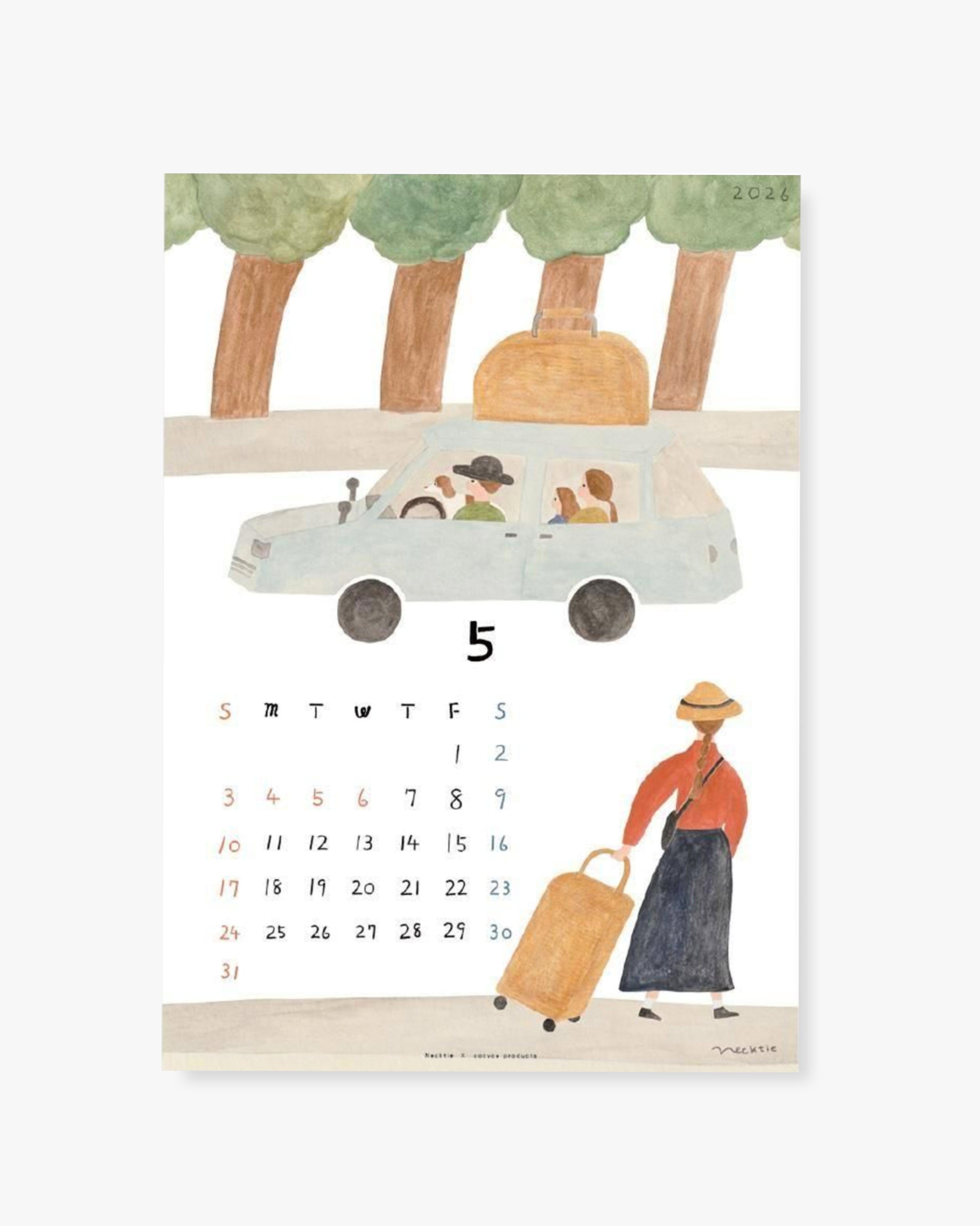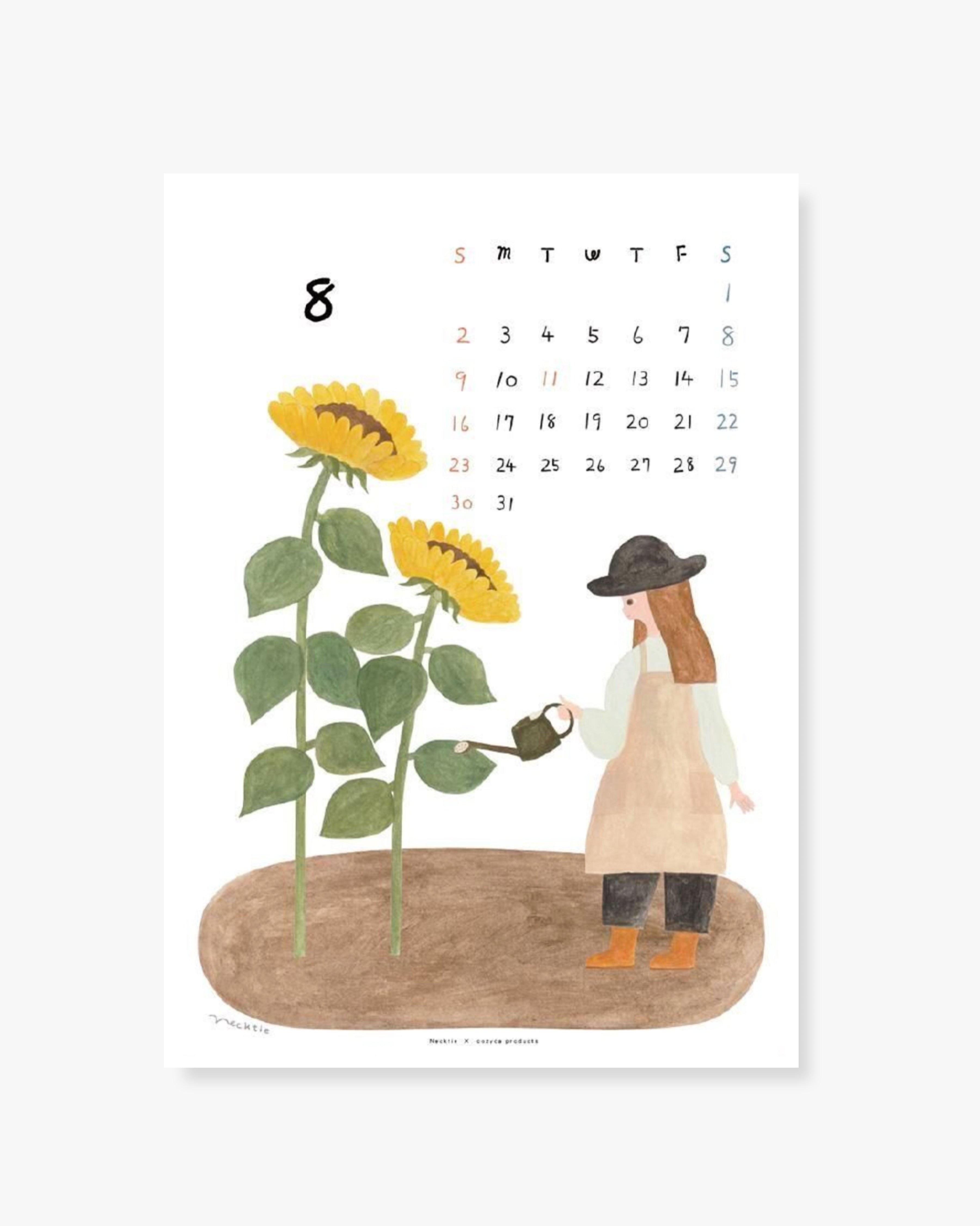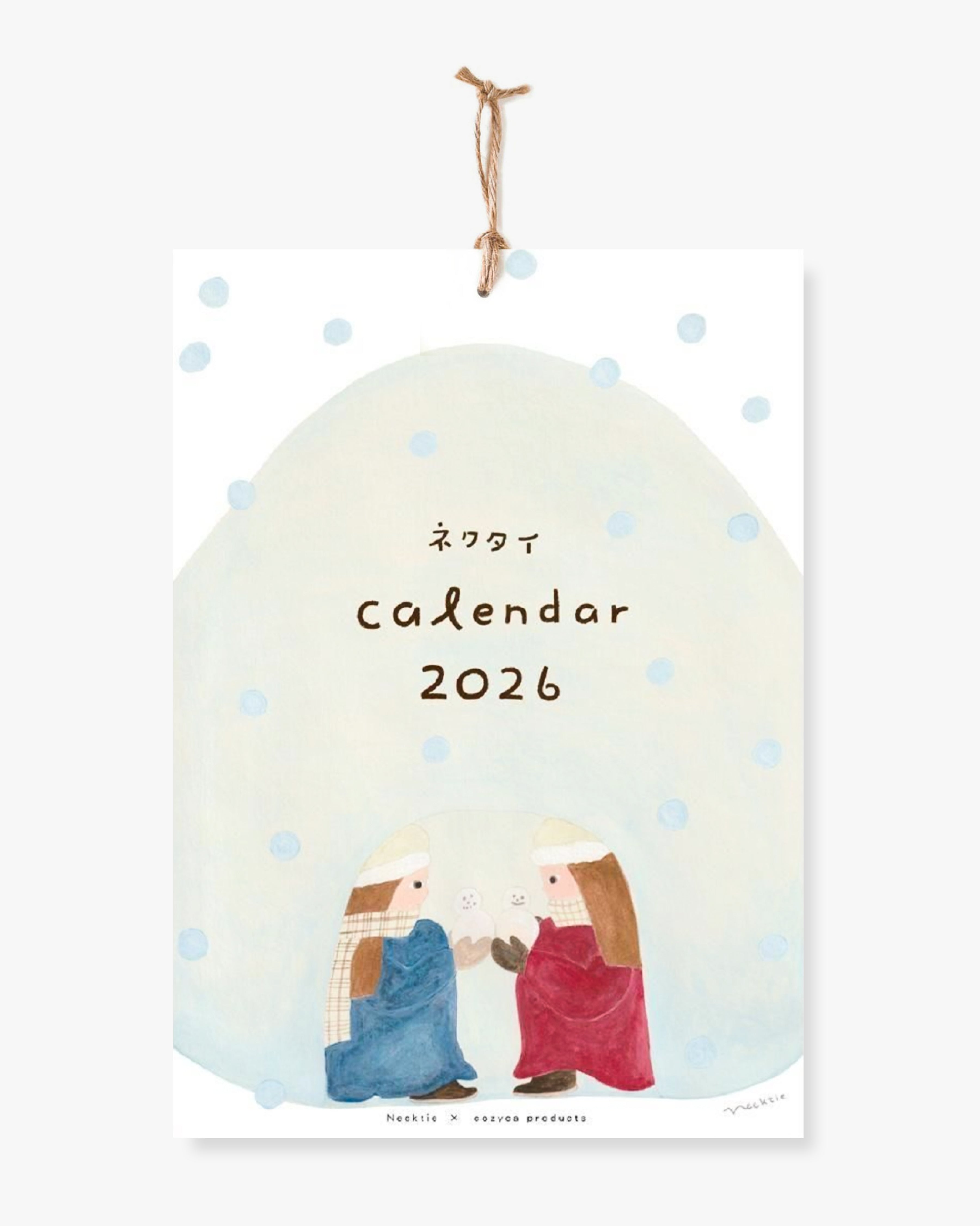 This 2026 calendar by Japanese artist Necktie celebrates the changing seasons. Building snow huts in winter, watering sunflowers in summer and harvesting cabbages in the fall. Twine tie for easy hanging. Printed in full color on high-quality, sturdy paper. Please note holidays marked are Japanese holidays.