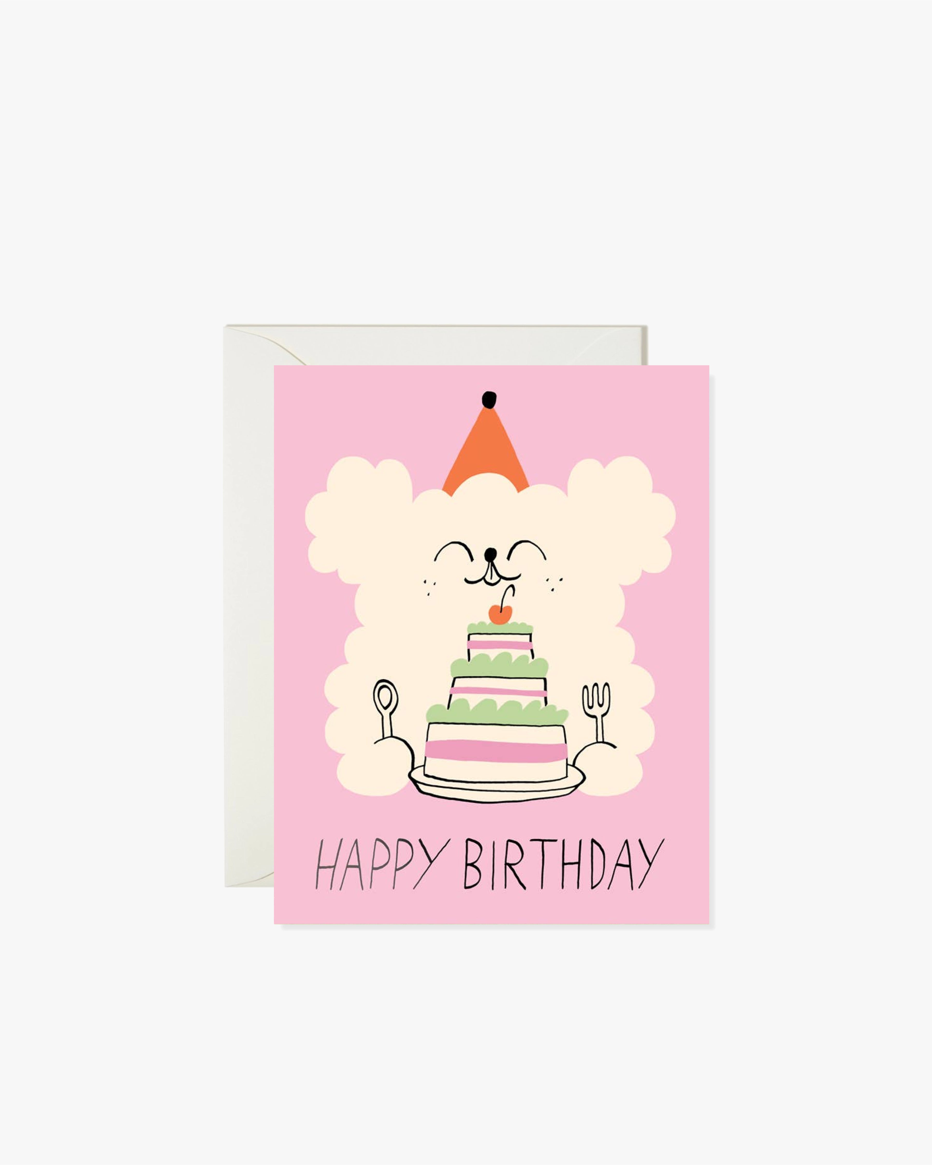 A birthday card with hand-drawn illustrations and typography by Odile Ferraille. Black foil detail. Printed in the UK.