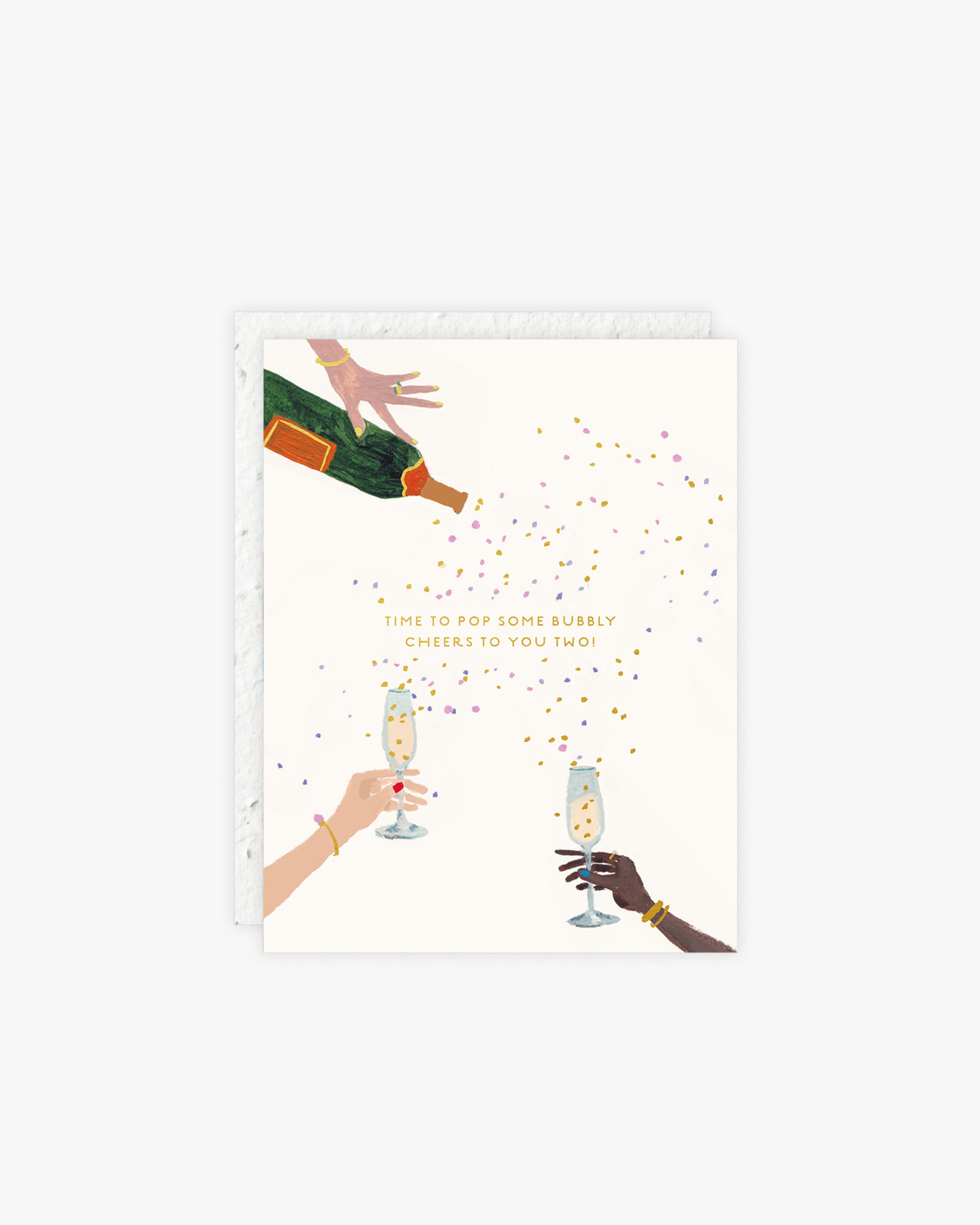 A cheerful wedding card with foil details, paired with a plantable seed paper envelope. Seedlings envelopes are embedded with non-invasive wildflower seeds and naturally compost when planted—leaving only flowers behind.