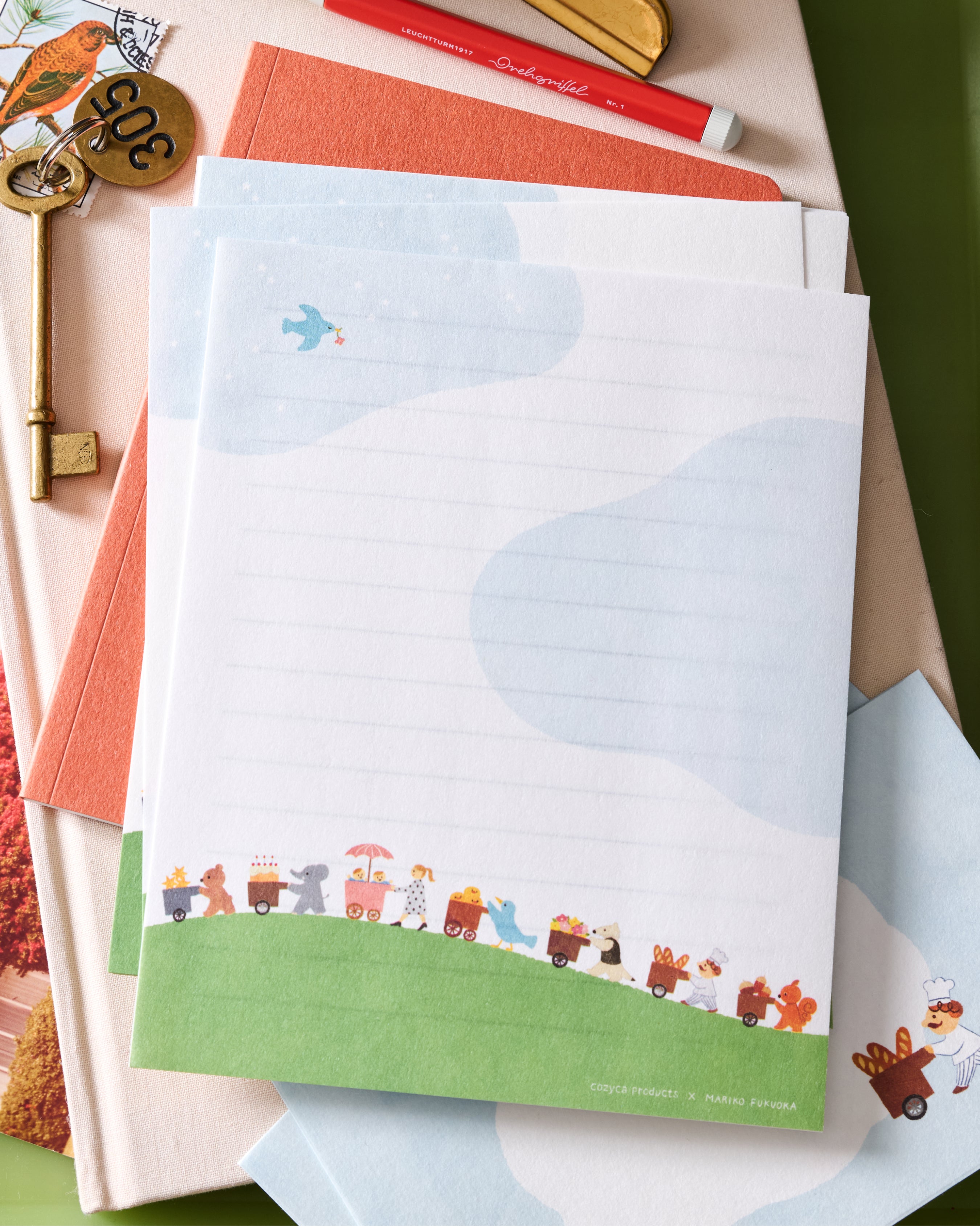 This stationery writing set includes twelve beautifully illustrated sheets and four patterned envelopes. The envelopes are perfectly sized to hold the paper when folded in half. Illustrated by Japanese artist Mariko Fukuoka.